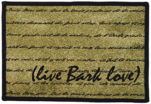 -. Binding : Misc. -. Brand : Park B. Smith -. Color : Tan -. EAN : 0081675460726 -. Feature : Tapestry indoor/outdoor liquid resistant rug / Protects floors underneath pet dishes or as a doormat / Machine washable with non-skid backing / 80% Cotton 20% Polyester -. Label : Park B. Smith Ltd. -. Manufacturer : Park B. Smith Ltd. -. Model : LIBL17 GOB -. MPN : LIBL17 GOB -. NumberOfItems : 1 -. PackageQuantity : 1 -. PartNumber : LIBL17 GOB -. ProductGroup : Pet Products -. ProductTypeName : PET_SUPPLIES -. Publisher : Park B. Smith Ltd. -. Size : 13" x 19" -. Studio : Park B. Smith Ltd. -. Title : PB PAWS PET COLLECTION BY PARK B. SMITH Live Bark Love Tapestry Indoor Outdoor Pet Mat, 13 x 19", Gold/Black -. UPC : 081675460726