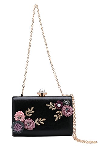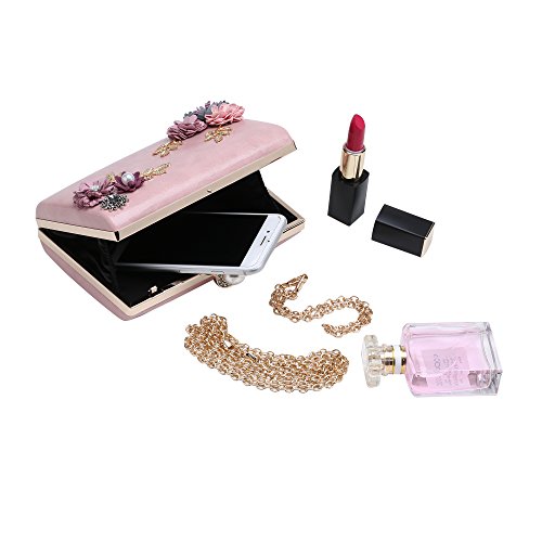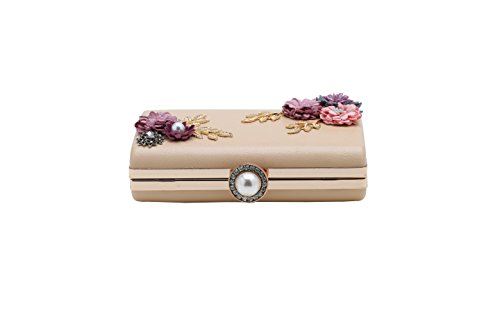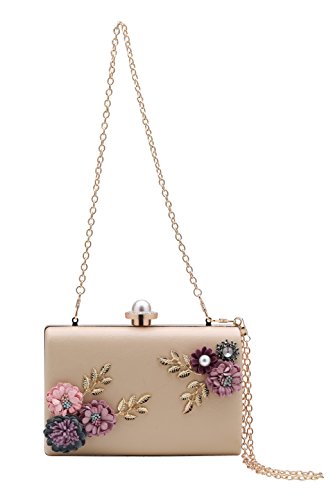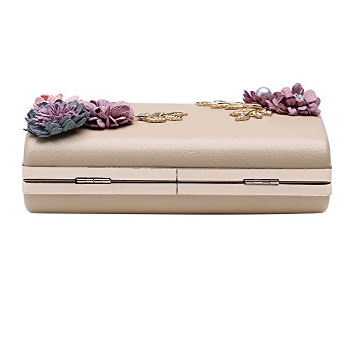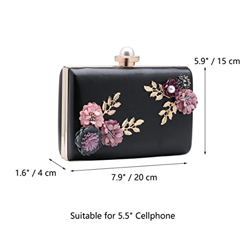 -. Feature : Size - 7.87 x 5.9 x 1.57 inches (L x H x W), detachable chain strap 15.74 inches long. / Containing - the elegant and graceful clutch handbag is just the right size for most needed items, such as keys, card wallet, compact mirror, lipstick and any other little items. / Features - the flower clutch purse can be held by hand or hung on hand with the detachable chain. It is decorated with handmade well craft flowers and gorgeous golden leaf banches. / Occasions - decent evening style clutch, perfect for night out, date, cocktail party, family reunion, prom, wedding, party, formal dinner and so on. / BABEYOND® IS A REGISTERED TRADEMARK IN US PATENT AND TRADEMARK OFFICE ( Serial Number 86492044 )