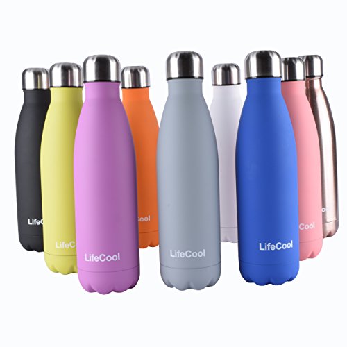 LifeCool Double Walled Vacuum Flask |Insulated Stainless Steel Water Bottle |Leak-proof Cola Shape Sports Water Bottle | No Sweating | Keeps Your Drink Hot & Cold - 17 Oz (500 ml)