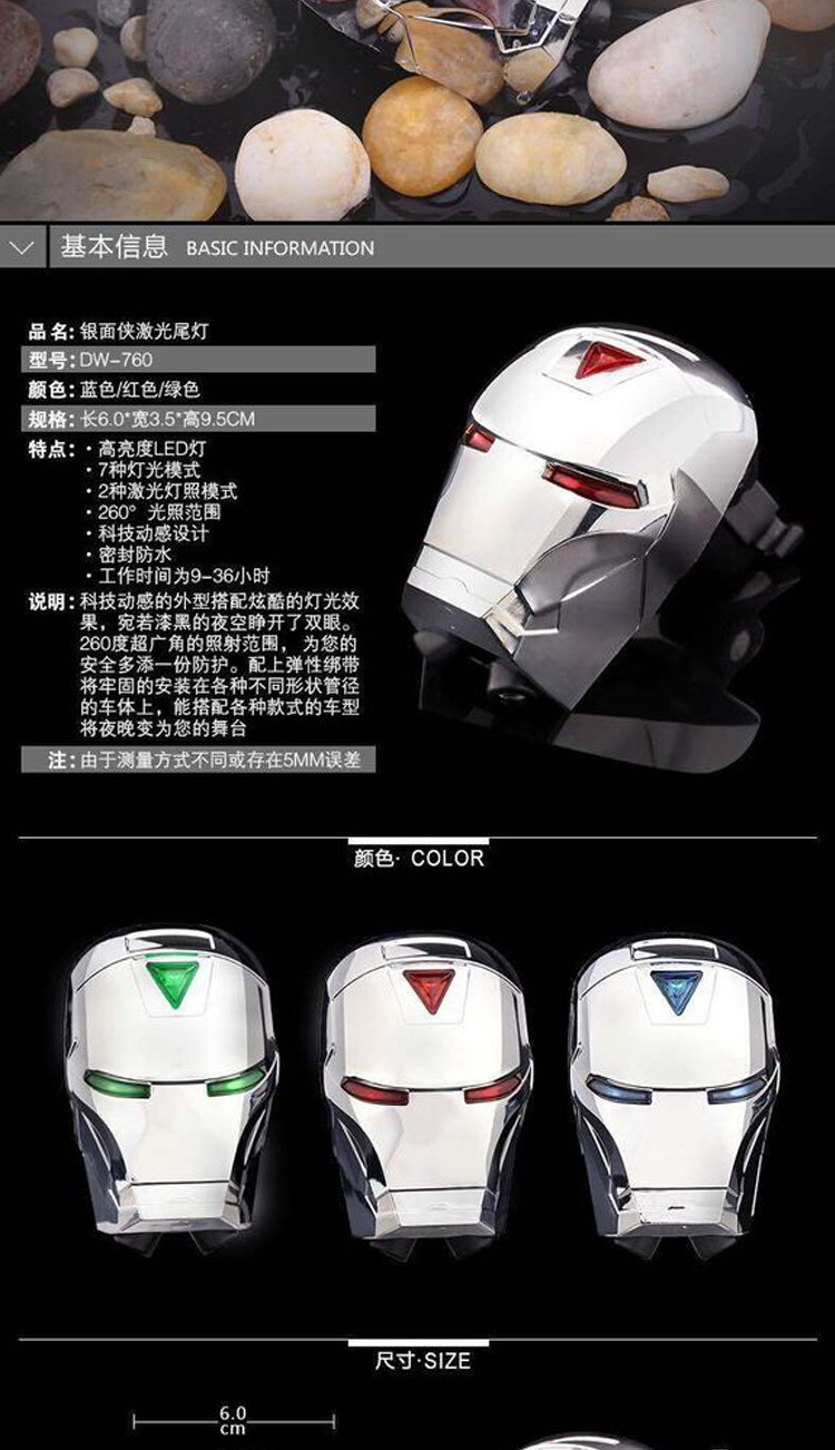 山地自行车尾灯钢铁侠激光尾灯单车警示灯骑行尾灯单车配件