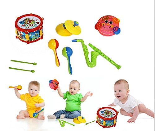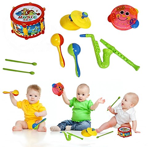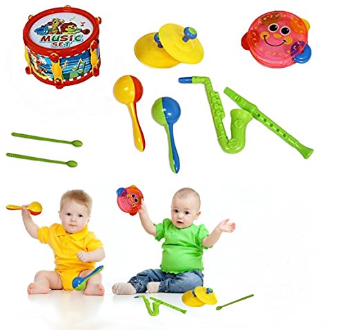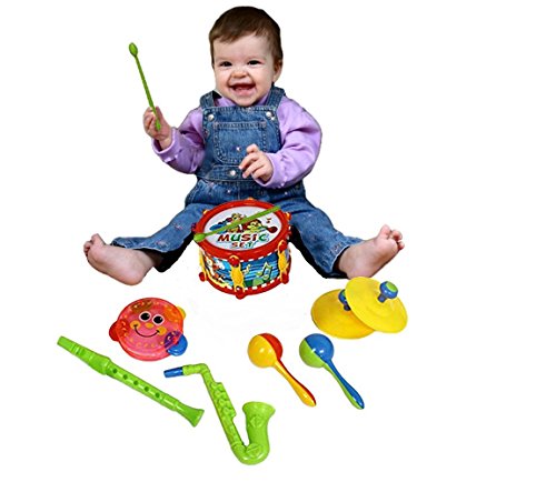Let your child enjoy the beauty of music with Toy Cubby Rock Band Kids Music Instrument Set. Music set contains 6 bright colored instruments including - drum stick, flute, drum, saxophone, cymbals and tambourine. Instrument sets are made from high quality durable plastic, made to last long from countless hours of playing and provides a long hour of entertainment to your kids. Instrument measures from 4 to 8 inches. Great to play with friends and family. Teach them to play like a pro! Help promotes music in early age.Feature