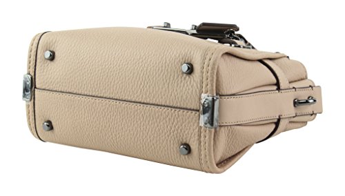 Subtle tonal colorblocking lends this perfectly petite carryall a pretty sophistication for spring. This coveted silhouette is finished by hand in plump pebble leather with high-polish hardware and a strap that clips on for hands-free wear. Imported. Style 37500.Feature