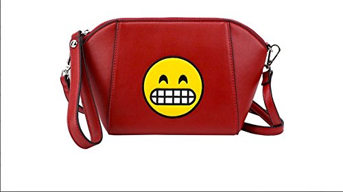 -. Feature : Includes One Women's Kiss Emoji Handbag Purse in the Color Red / Features main zipper compartment, inner side pouch with zipper, wrist strap, and detachable body strap. / This super cute and functional handbag features a yellow grinning face emoji on the cover. / Perfect for carrying your wallet, cellphone, keys, and other small personal items. / Makes a great gift! Dimensions: 10" x 6" x 4"