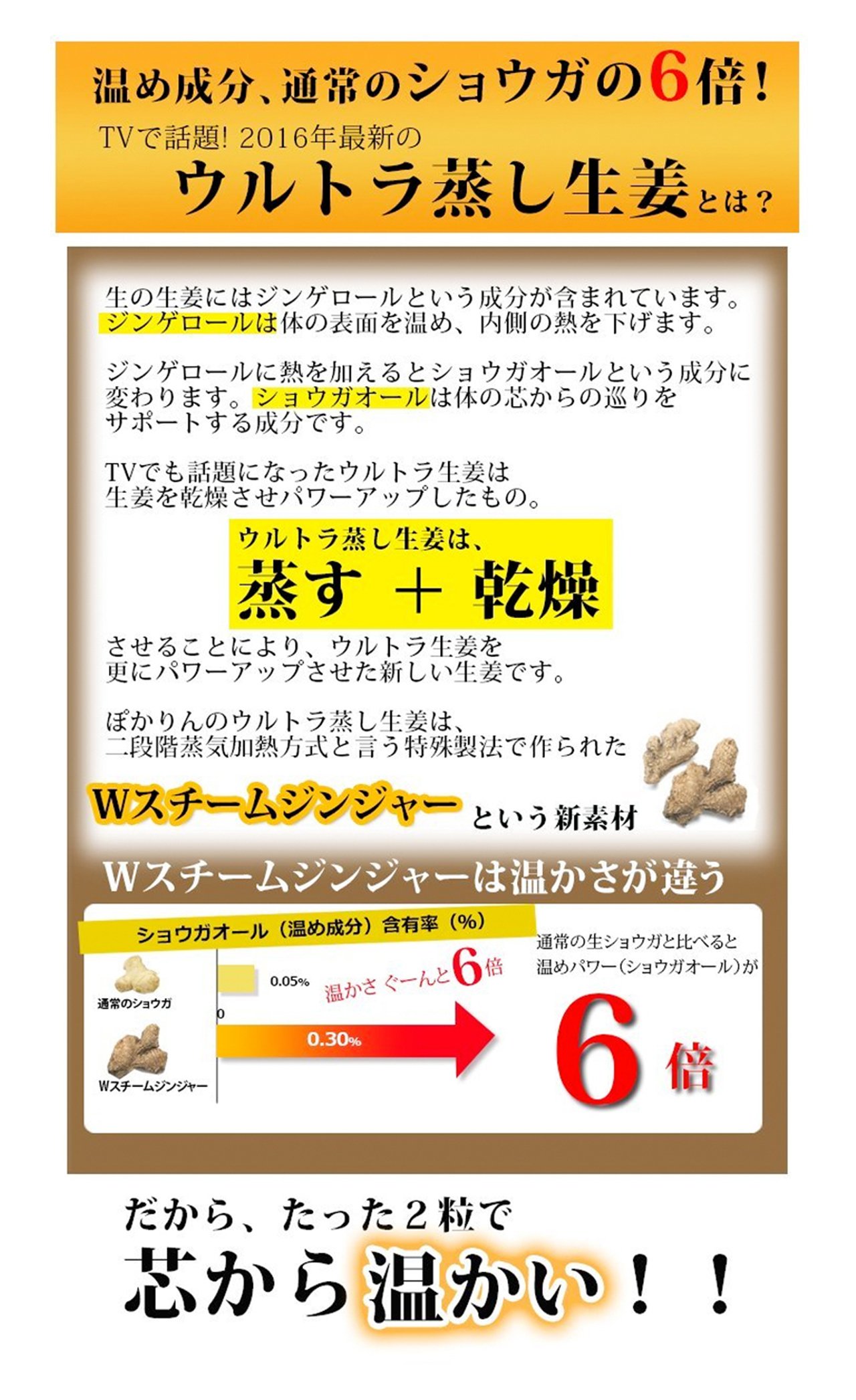 "Steam" and "dried" Ultra-steamed ginger supplement.