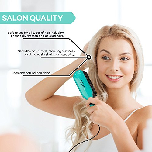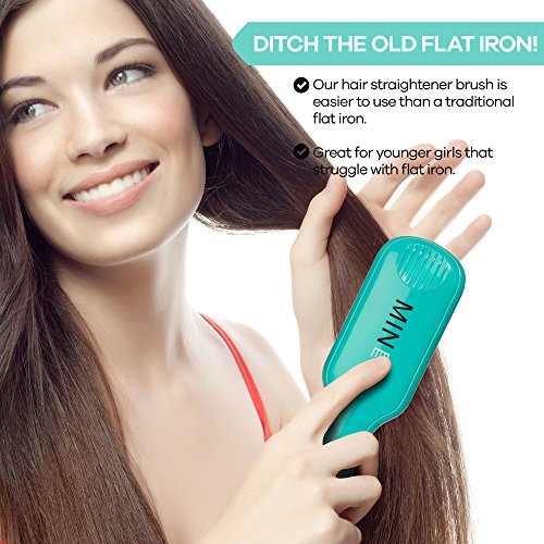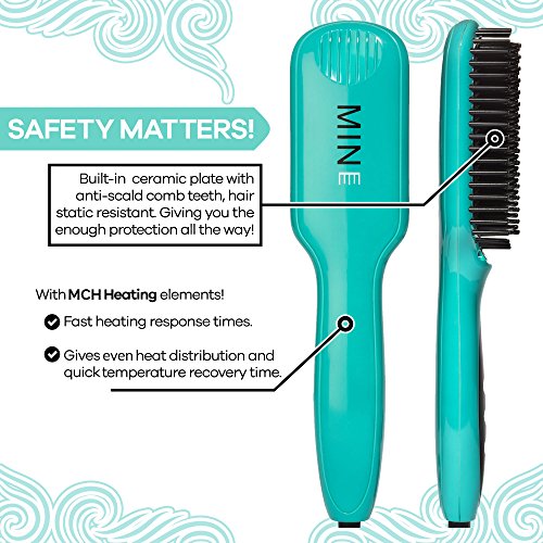 MINE Hair Straightener Brush – with Anti Scald Ceramic Comb Teeth, Dual Voltage, Easy to Operate Temperature Control, Automatic Button Lock – for a...