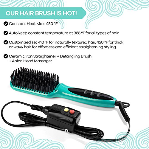 - FEATURES ANTI-SCALD DESIGN: The built-in ceramic plate with anti-scald comb teeth straightens without burning your hair, fingers, and hands.