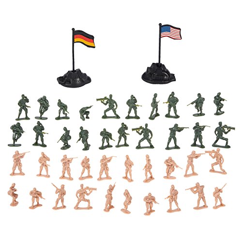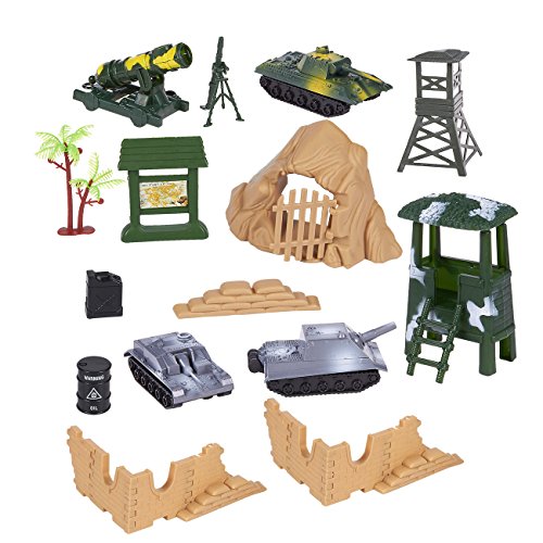 -. Feature : KEEPS YOUR CHILDREN BUSY: This military toy set can stimulate children's imagination and leave them occupied for hours. / BULK ARMY FIGURES: Each package includes 100 pieces of miniature army figures and accessories. There are 39 total soldiers in two different colors and in various positions. Package also includes an assortment of military equipment, 2 flags, and a variety of battlefield accessories for setting up the scene. / SAFE AND DURABLE: All pieces have smooth edges and are made of Polypropylene plastic and BPA free making it safe for children to play with. However, this toy set is not recommended for children under the age of 3, and parental supervision is advised. / EASY STORAGE: This army toy set comes with a plastic zipper closure bag for easy storage after use. Plastic bag also comes with a handle for easy transport. / DIMENSIONS: Smallest piece to largest piece ranges from 1.3 x 1.2 x 0.6 to 3.7 x 2.3 x 5.1 inches.