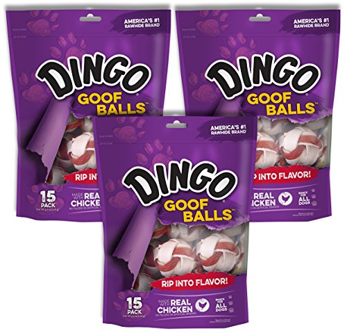 -. Feature : 3 PACK / Tasty chicken jerky wrapped in rawhide / Irresistible chew that's fun and tasty / Each value bag contains 15 Goof Balls / Chicken & Rawhide chew