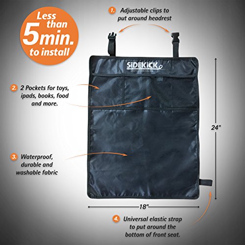 -. Feature : TWIN VALUE PACK- 2 Count pack to cover the back of BOTH driver and passenger seats with these large kick mats that cover 18 inches across and 24 inches down. This mat will cover from the top to the bottom of the back of your seat to easily protect form dirty feet or scuff marks. / KEEP YOUR CAR LOOKING LIKE NEW - Protect your investment by looking after your auto car interior upholstery with premium kick mats from Sidekick (frequently bought together with Sidekick Car Seat Protectors). / SIMPLE & EASY TO INSTALL - Install both in under 5 minutes. A universal elastic strap around the bottom is flexible to fit most SUV's, sedans, subaru outback and mini van seats. The top clips fastens around the headrest. / EASY TO CLEAN- The long lasting durable 420D polyester dual layer design, will keep on working no matter how many times your child scuffs it with their muddy and wet feet. The water resistant material can be wiped clean with a cloth, or machine washed. / 2 IN 1 SEAT PROTECTOR & ORGANIZER- Perfect for not only stopping foot marks, but for organizing and providing easy access to favourite toys, a drink bottle, ipad, books or baby wipes. Your kids will love it. PLUS you get a 100% lifetime warranty. Protect your cars seats now and click the add to cart button.