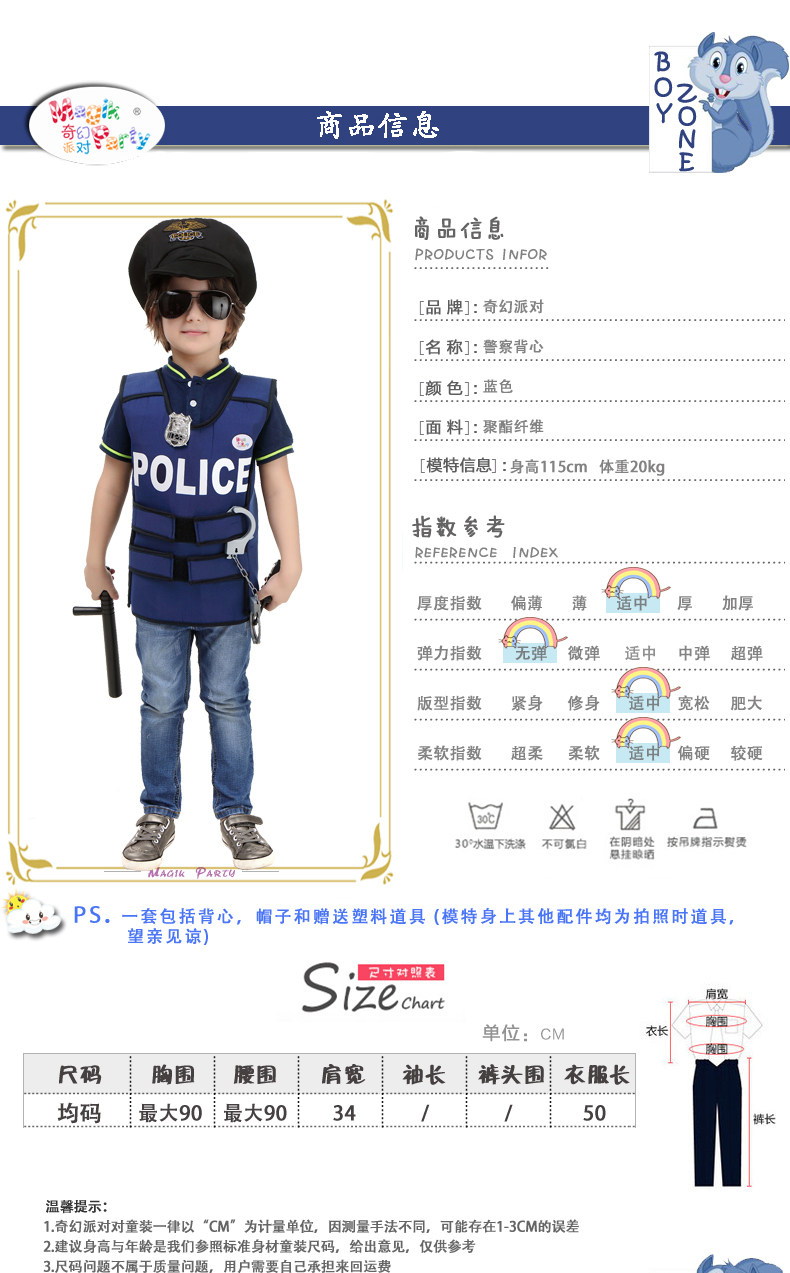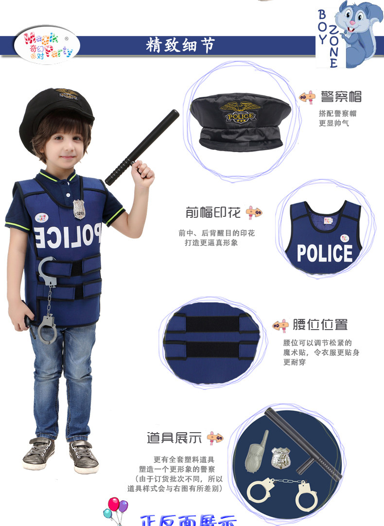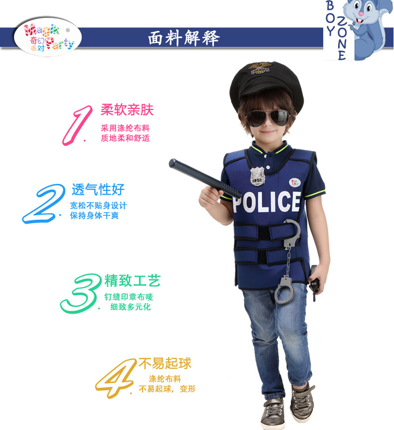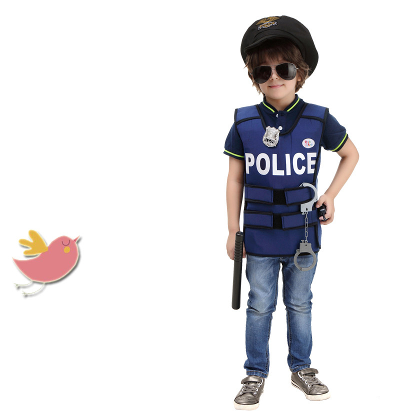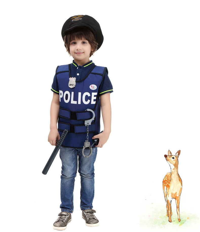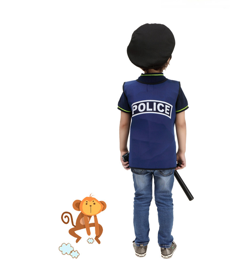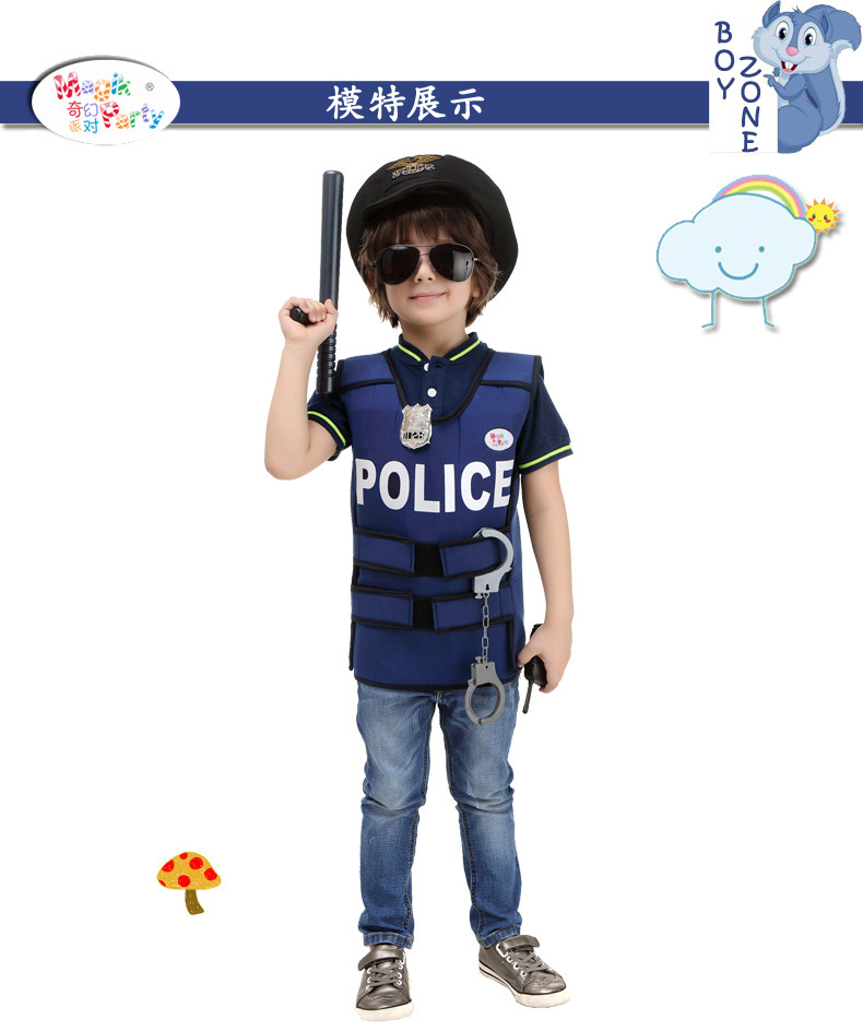 万圣节儿童演出服装角色扮演男童警察协警保安表演服饰警察背心服