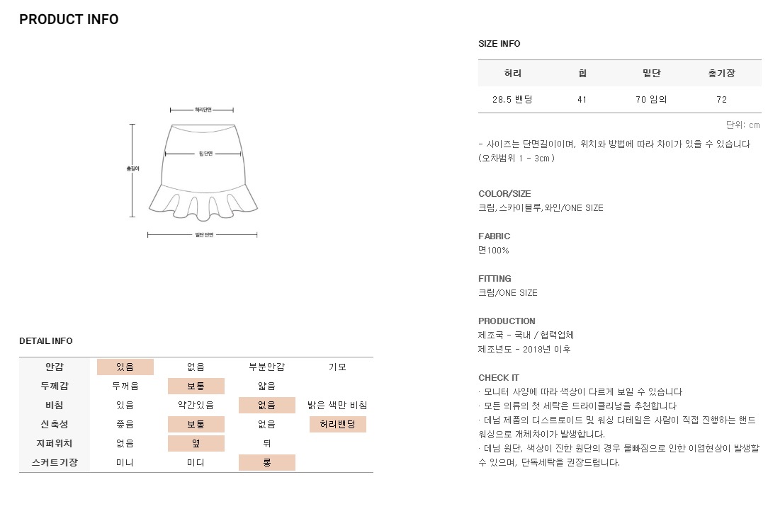 뒤쪽 허리밴딩처리로 사이즈 구애없이 착용가능해요