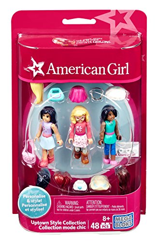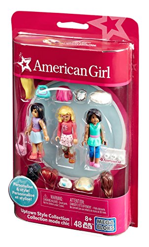 -. Binding : Toy -. Brand : Mega Bloks -. EAN : 0887961337617 -. Feature : Create a diverse world to play in! / Three unique, highly detailed, fully articulated American Girl mini figures / Customize your American Girls by changing their outfits and hair / Each figure is highly detailed and offers a distinct look / Combine with other Mega Bloks American Girl play sets to build your own stories! -. IsAdultProduct : 0 -. Label : Mattel -. Manufacturer : Mattel -. Model : DRL03 -. MPN : DRL03 -. PackageQuantity : 1 -. PartNumber : DRL03 -. ProductGroup : Toy -. ProductTypeName : TOYS_AND_GAMES -. Publisher : Mattel -. ReleaseDate : 2016-07-15 -. Studio : Mattel -. Title : Mega Bloks American Girl Figurine Uptown Style Collection -. UPC : 887961337617 -. Warranty : 1 year warranty against manufacturer defects