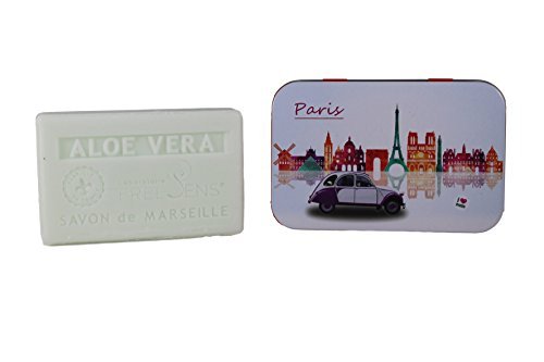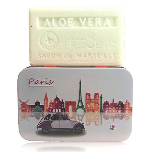 Freesens - Savon de Marseille Bar Soap, Aloe Vera, Metal Box, Made in France, 100gr