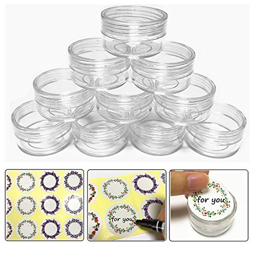 (20 Pieces Clear) 10gram/10ml Round Clear Container Jars with Clear Lids for Lotion, Creams, Toners, Lip Balms, Makeup Samples with Label - BPA Free