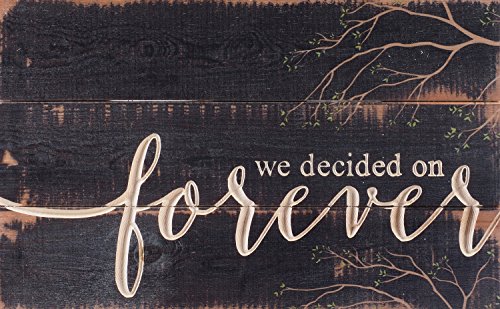 We Decided On Forever Distressed 17 x 11 Inch Solid Pine Wood Carved Calligraphy Wall Plaque Sign