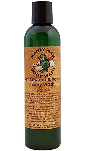 - OUR ALL NATURAL, SANDALWOOD & VANILLA 8 oz. scented body wash is hydrating to the skin and will keep even the most manly of men clean and smelling sweetly masculine.