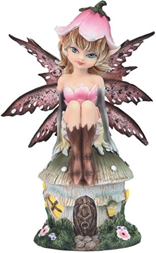 StealStreet SS-G-91810 Pink Fairy Sitting on Hut with Flowers Trinket Box, 8.75"