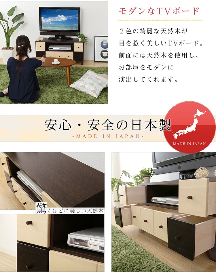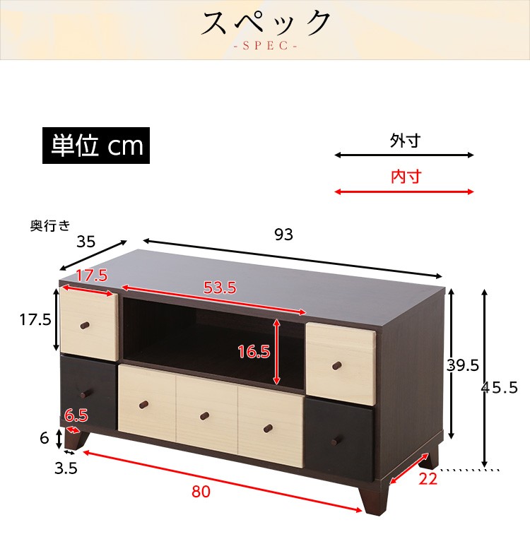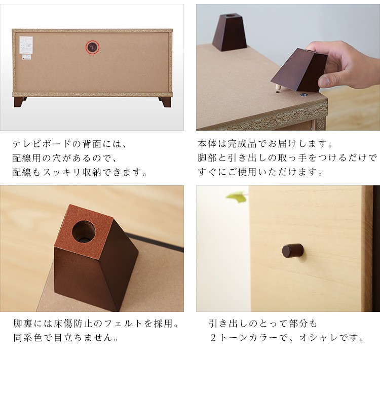 【商品について】完成品TVボード【prier-プリエ-】(幅93cm 国産 テレビ台 完成品 ツートンカラー 桐)■サイズ:外寸:(約)93x35x45.5cm※商品重量:(約)17kg■カラー:ダークブラウン■素材:正面:天然木側面:ウレタンプリント紙化粧繊維板■その他:・完成品でのお届けです。・梱包サイズ:(約)95x40x40cm・梱包重量:(約)18kg