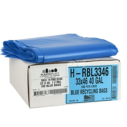 Plasticplace Blue Recycling Bags 40 Gallon 23x10x46 1.2 Mil 100 per Case