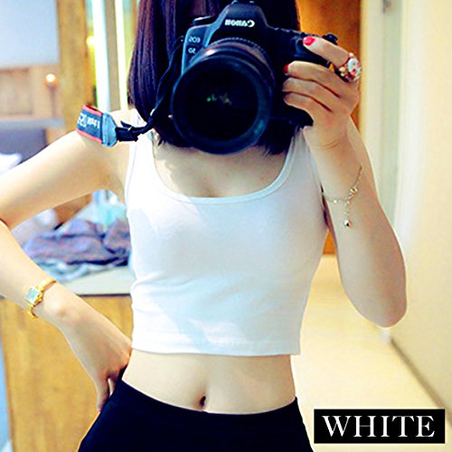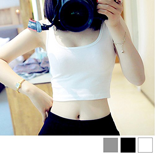 -. Title : タンクトップ レディース おしゃれ スポーツ トップス ショート丈 ノースリーブ 下着 インナー 無地 女性用 シンプル ブラック ホワイト グレー きれいめ (フリーサイズ, ホワイト)