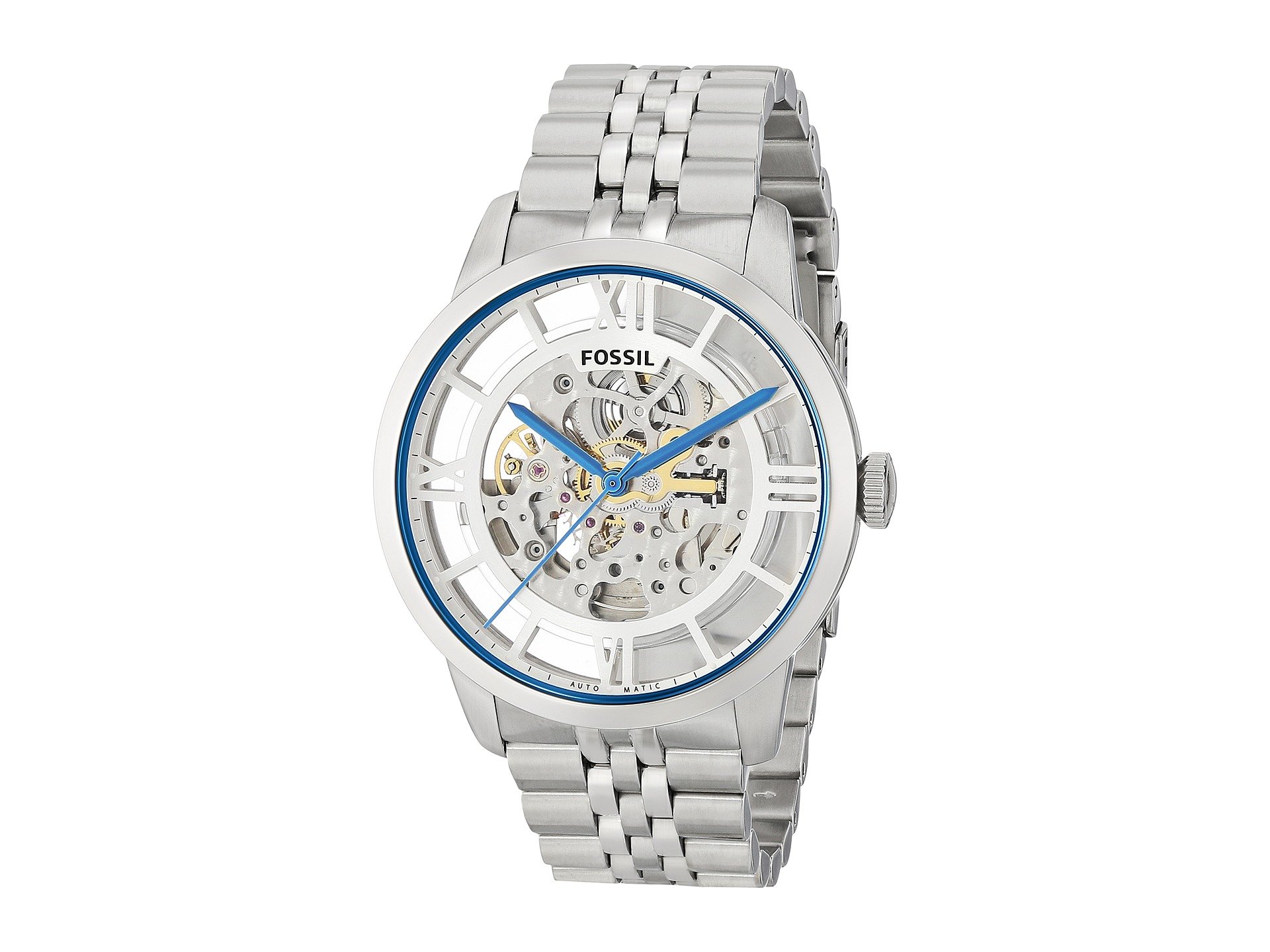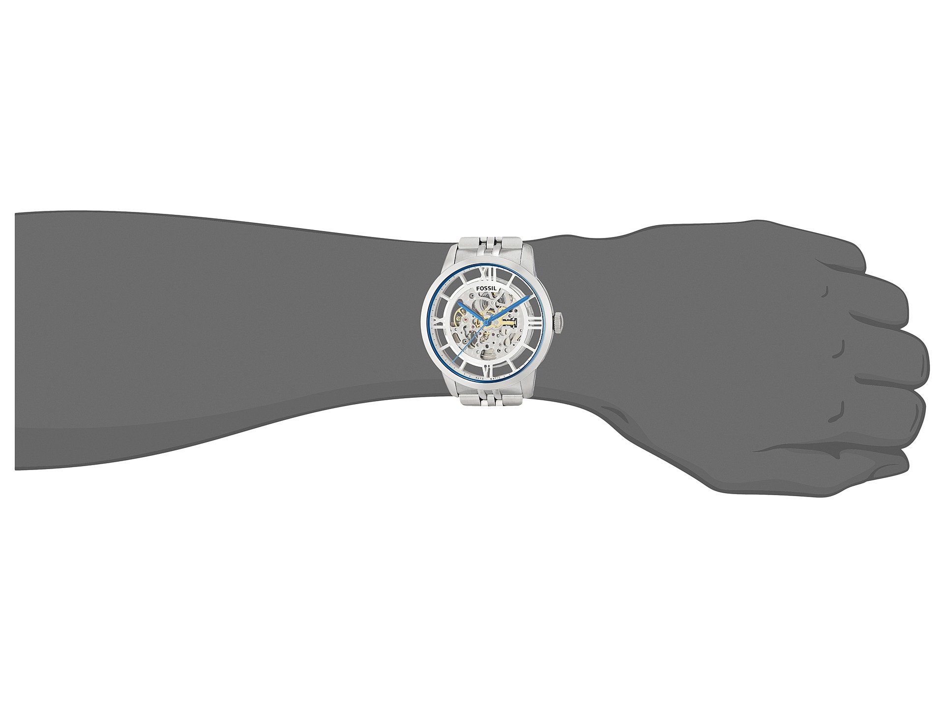 | Product Information SKU: #9031093Level up your look with the striking Fossil? Townsman watch.Stainless steel case.Stainless steel bracelet with a deployment closure. Round face.Three-hand analog display.Exposed dial features blue hands, hour markers, and brand detailing.Water-resistant to 5 ATM/50m.Imported.This product may have a manufacturer's warranty. Please visit the manufacturer's website or contact us at warranty@support.zappos.com for full manufacturer warranty details.Measurements: Case Height: 44 mm Case Width: 44 mm Case Depth: 12 mm Band Width: 22 mm Band Circumference/Length: 8 1?2 in Weight: 6.4 oz |