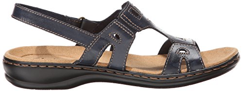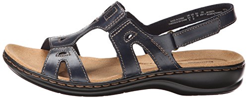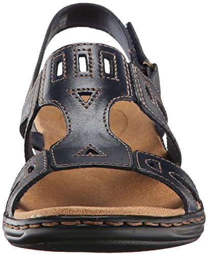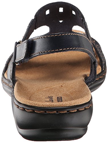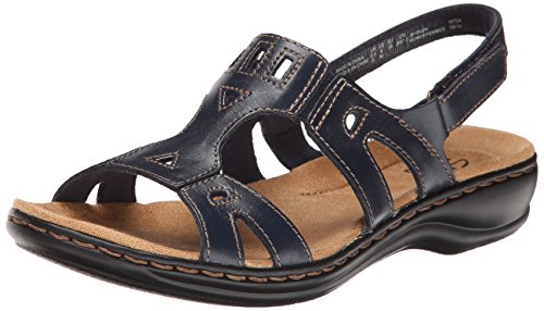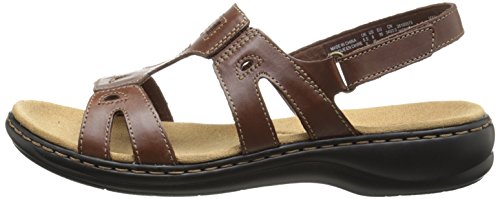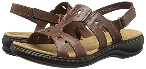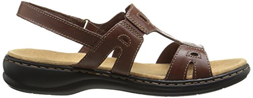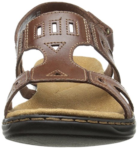 Casual sandal with leather upper featuring contrast stitching and geometric cutouts