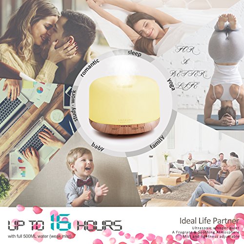 - 💐Best Gift for Valentine's Day💐5-IN-1 AROMATHERAPY DEVICE: This ultrasonic essential oil diffuser is an amazing multifunction aromatherapy device unlike any other you've ever used. It features a large and easy to clean 500ml water tank, 7 different LED light colors, multiple mist nebulizer modes, as well as a safety auto-switch that prevents it from overheating in case it runs out of water.