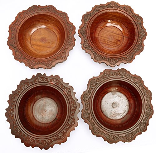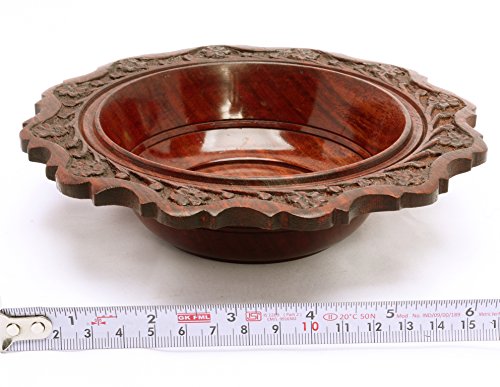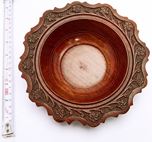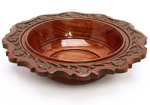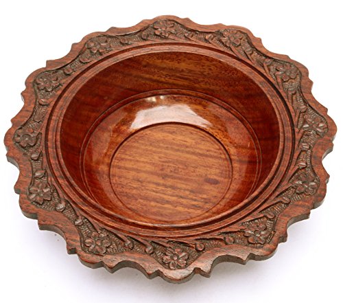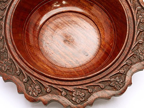 Floral Carved Wooden Bowl Vintage Style Indian Wood Craft Gift 7"Dia