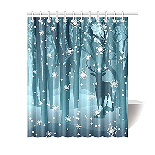 Stag in Winter Forest Reindeer Waterproof Polyester Fabric Bathroom Shower Curtain with 12 Hooks 60"(w) x 72"(h)- Bathroom Decor by Qearl