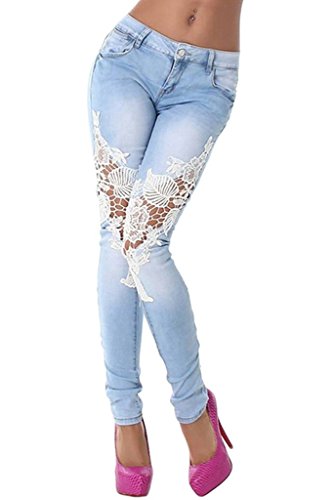 -. Title : Kyphtem スキニージーンズ レディース セクシー ローライズ ストレッチ 美脚 ジーンズ デニムパンツ レース加工