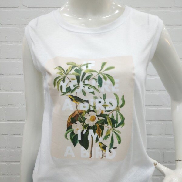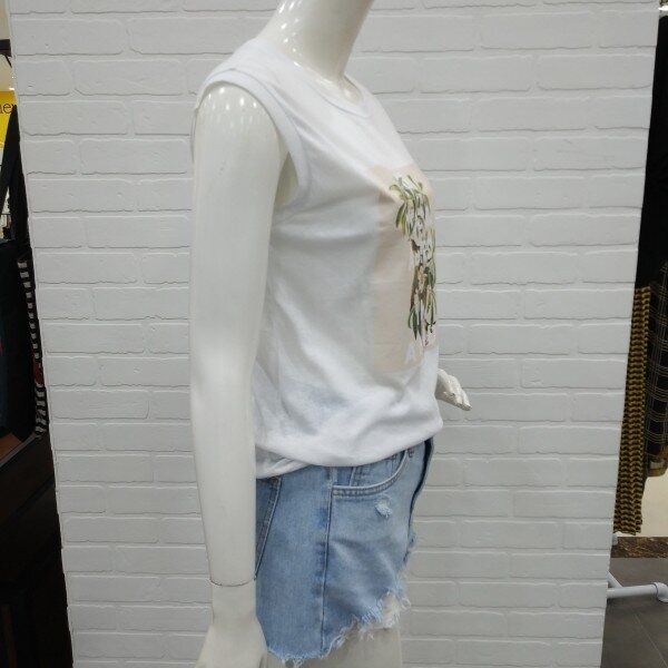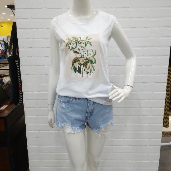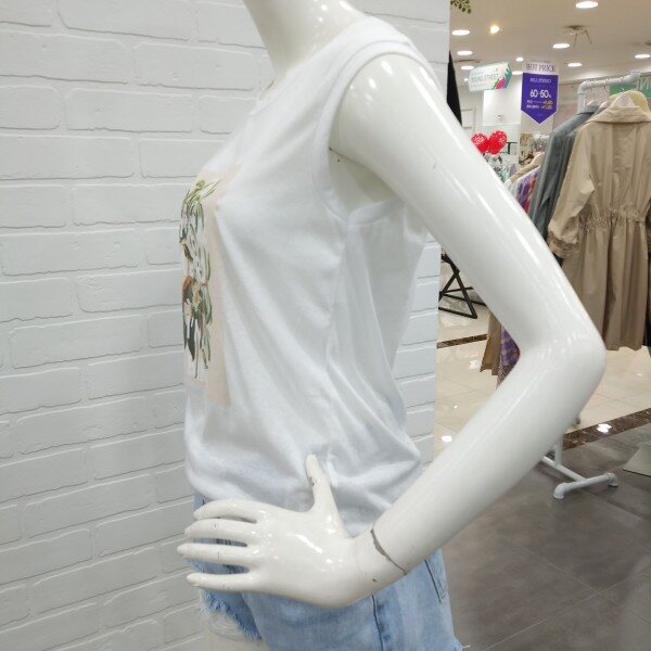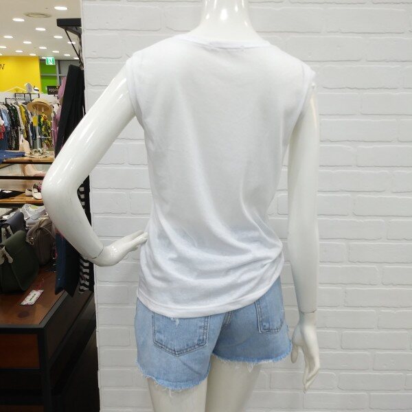 깔끔한 프린팅과 면소재의 민소매티로 편하게 입기좋은 티이에요~