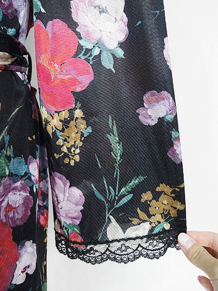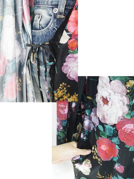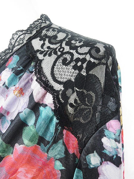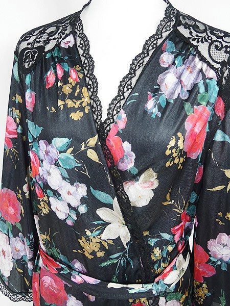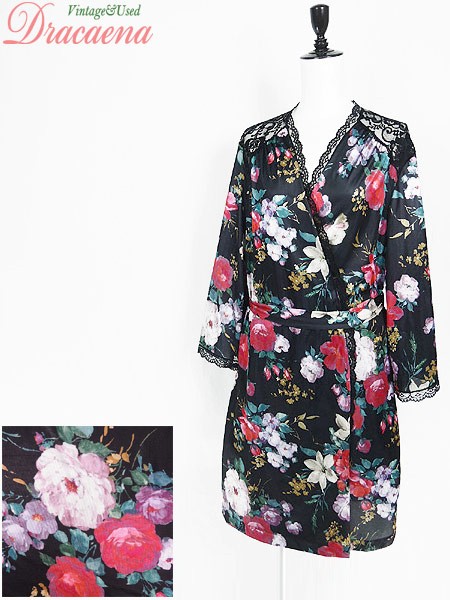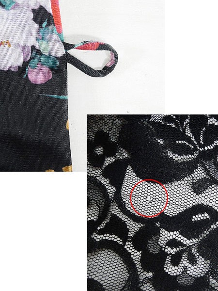 Ladies ブランド- カラー黒ベース メール便不可 コンディション★★★ 素材ポリエステル 表記サイズL スタッフコメント左袖数カ所に小穴ダメージあり。右肩、レース部分に小穴あり。 実寸サイズ 着丈 97 cm 身幅 61 cm 肩幅 44 cm 袖丈 49 cm ※ウエスト・ヒップ以外は平置き採寸