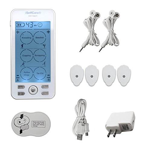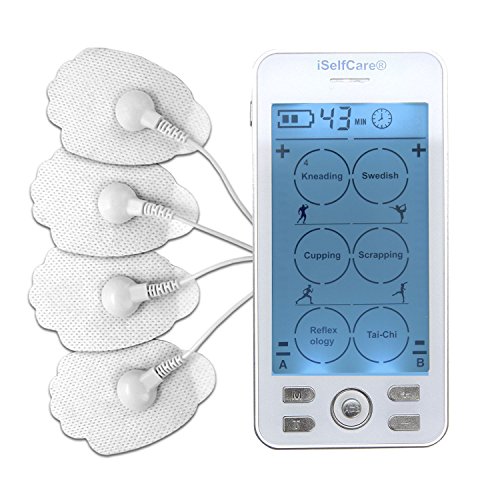 FEATURES - Most Advanced! – iSelfCare device has 6 operation interfaces with 24 sub-modes, which can give certain electrical pulses through electrode adhesive pads to the suggested area of the body where the electrodes are placed. The large and easy to read LCD display screen can show battery power, selected mode, current intensity, time remaining of an application mode, and indication of an A and B shift.
