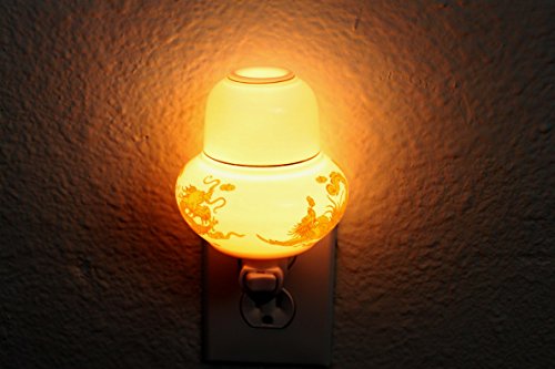 Excellent painted dragon and phoenix on translucent white porcelain. It's trimmed with gold. Despite of being night light, you can use it as plug in oil warmer or burner. Easier and safer to use! Just pour a little scented oil at the top of the night light (a small dish).