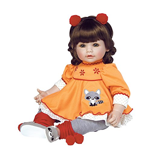 -. Feature : Macaraccoon toddler baby doll is 20" from head to toe, and made of baby powder scented high quality vinyl with a moveable head, arms and legs. Her weighted body comes complete with a diaper for realistic play to develop social skills while engaging in nurturing playtime. / This toy baby doll comes wearing a removable orange empire waisted dress accented with a playful raccoon emblem, red, white and gray polka dot trim, and adorable raccoon shoes to match. / Her brunette banged hair and ringlet curls complement her big doe colored eyes while red pom-pom headband and leg warmers complete the toddler doll's whimsical woodland ensemble. / Designed to last, Adora Toddler dolls are handmade with love featuring hand painted faces made of the highest quality, baby powder scented vinyl. / Toy tested for children aged 6+, BPA Free, Non Toxic, hypoallergenic, Consumer Product Safety Commission (CPSC) Tested. ToddlerTime dolls have been recognized by many Toy Industry Award Organizations with accolades such as: Best Creative Fun, Preferred Choice, Best Classic Toy and more.