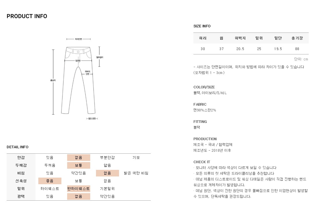 쫀쫀한 스판끼로 편안한 착용감을 선사해드려요
