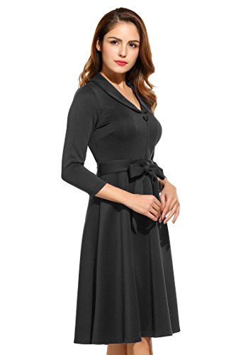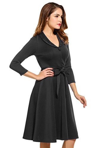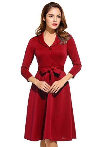 Classical Vintage Belt Party Swing Dress,Mid-calf length