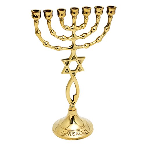 Grafted in Messianic brass copper vintage 7 inches Magen David / Star of David Menorah candle holder Israel Judaica
