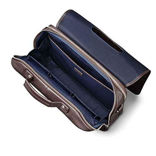 Studio : Samsonite Publisher : Samsonite Product Description Classic doesn't have to feel common. The timeless silhouettes in our Men's collections are reinvigorated in full-grain pebble and smooth leathers. Each bag is thoughtfully designed to be as versatile in functionality as they are in style. More than an average brief, the Flap silhouette is defined by its craftsmanship. Multiple tech compartments, dedicated laptop storage and accessory organization make this an easy choice for the seasoned professional.? Front pocket under the flap, conveniently store all of your need-it-now essentials, providing superior organization without unzipping the main compartment.? Pass-through sleeve with zip bottom, accommodates most luggage handles for seamless, on-the-go travel. When zipped, this feature doubles as an additional pocket. ? Removable, adjustable, leather accented, shoulder straps provide a custom and comfortable wearing experience.? Metal feet protect the leather base against wear.? Removable, leather tag with bottle opener, provides a playful on-the-go accessory.? Dedicated, padded tech compartment fits up to a 15.6" laptop or tablet.? Padded tech sleeve in the main compartment, fits up to a 14" laptop or tablet.? Three accessory pockets provide interior storage for smaller essentials.? Dust cover is included for protection and storage.? Handle drop - 2 inches.? Weight: 4.3 lbs.Body Dimensions: 16.5" x 14.2" x 5.1"Overall Dimensions: 16.5" x 14.2" x 5.1" 0