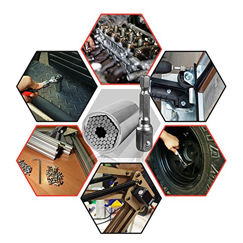 ✔ A FULL SET OF SOCKET TOOLS IN ONE: The universal socket tool will perfectly adjust to grip any kind of bolt. Use it for hex nuts, screw eyes, hooks, lag screws or bolt heads!