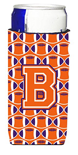 Letter B Football Orange, White and Regalia Ultra Beverage Insulators for slim cans CJ1072-BMUK