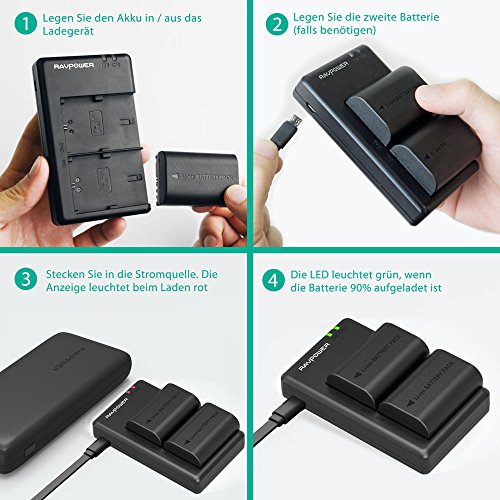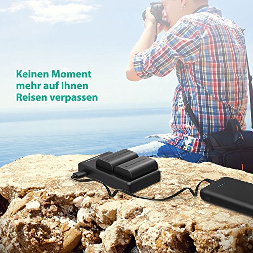 Mehr Power fur Mehr Aufnahmen: Beide 2000mAh Akkus konnen bis zu 650 Fotos machen; laden Sie die Akkus gleich in der Kamera auf mit dem 2,1A Input Ladegerat fur maximale Effizienz