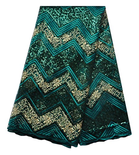 SanVera17 African Lace Fabric 5 Yards Nigerian French Net Lace Beaded Tulle Fabrics Guipure for Wedding Dresses us-fabric-111 (green)