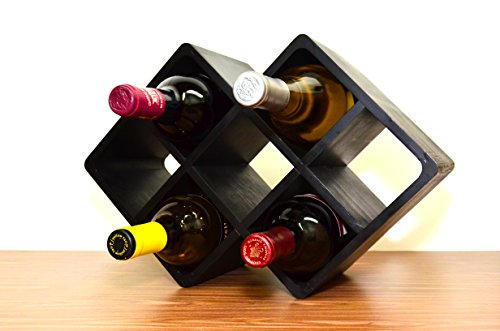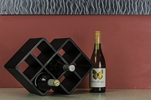 [Improved] Superiore Livello Firenze 8 Bottle Bamboo Countertop Wine Rack Modern Design for Easy Free Standing Table Top Storage, Natural Bamboo in Black Wooden Color and Solid Construction