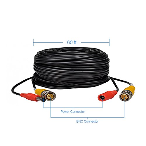 Iseeusee 60 Feet Pre-Made All-in-One Siamese BNC Video Power CCTV Security Camera Cable with One Female Connector for 960H & AHD & HD-CVI Camera and HD DVR Surveillance System
