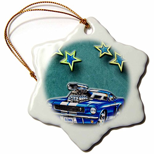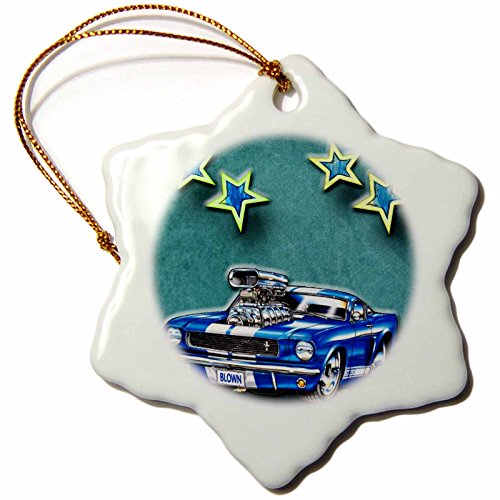 3dRose orn_128830_1 Blown Mustang Vintage Race Car with Stars for The Classic Car Lover Snowflake Ornament, Porcelain, 3-Inch