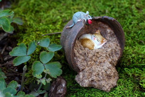 Top Collection Enchanted Story Garden Kitten Napping in Flower Pot Outdoor Decor