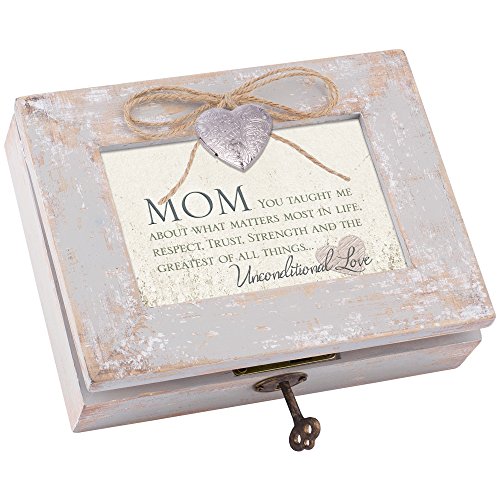 -. Title : Mom Taught Love Distressed Wood Locket Jewelry Music Box Plays Tune Wind Beneath My Wings