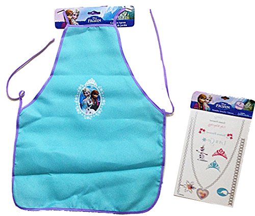 Disney Frozen Garden / Kitchen Kids Apron with Metallic Jewelry Temporary Tattoos Set