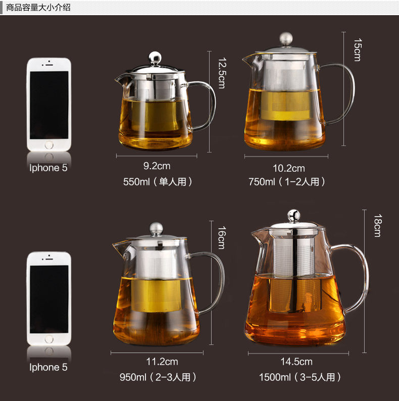 Color Classification: 550ml single pot single use, 750ml single pot 1-2 people use, 950ml single pot 2-3 people use, 1500ml pot with 3-5 people, 750ml pot +4 cups, 750ml pot + 4 cups + bamboo tea tray, 950ml pot + 4 + cup bamboo tea tray, 1500ml cup pot + 4 + bamboo tea tray